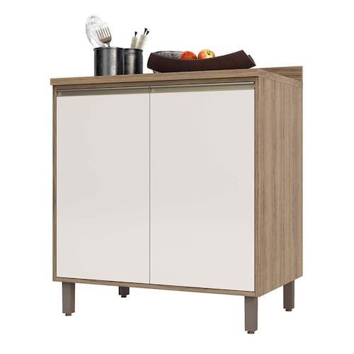 Balcão de Cozinha com Tampo 80 cm 2 Portas de abrir 1 Prateleira Mel Luciane Móveis. O Balcão de Cozinha com tampo 80 cm Mel foi desenvolvido aliando beleza e praticidade ao seu ambiente. Conta com 2 portas de abrir, 1 prateleira interna, puxador em alumínio gola na cor Inox e pés em PS -poliestireno- na cor champagne. Perfeito para sua cozinha.