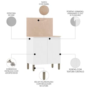 Balcão de Cozinha Com Tampo 80cm 2 Portas Minsk Branco Z06 - Mpozenato