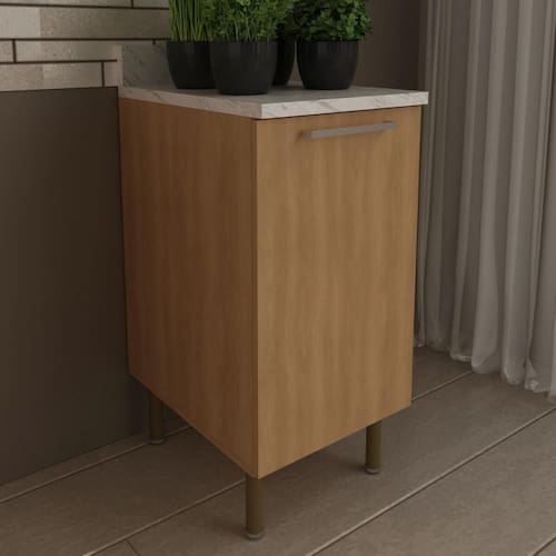 Nome do Produto no Fornecedor: Balcão de Cozinha com Tampo e 1 Porta 40cm Multimóveis CR20458 Freijó/Mármore Branco
