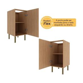 Possui 1 porta com dobradiças com amortecedor Slow Motion e puxadores em alumínio, proporcionando um manuseio suave, prático e silencioso. , a porta pode ser montada para o lado esquerdo ou direito, conforme sua preferência. O amplo espaço interno permite acomodar utensílios de cozinha com eficiência, já que sua prateleira interna suporta até 5kg. O tampo robusto (pintura UV) de 25mm suporta até 20kg, servindo de apoio no preparo de refeições.