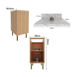 O Balcão de Cozinha com Tampo e 1 Porta 40cm Multimóveis CR20458 une praticidade e elegância, sendo a escolha perfeita para quem busca organização e estilo na cozinha.