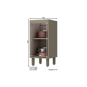 COZINHA (CARACTERISTICAS) Material dos Pés - ABS/PVC Tipo de puxador - Puxador Metálico Quantidade de Portas - 1 Porta de Abrir Quantidade de Prateleiras - 1