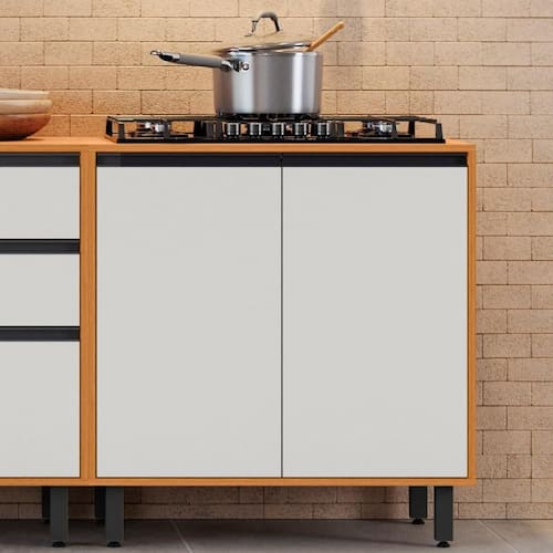 Este modelo pode ser utilizado de duas formas, como Balcão Com Tampo, servindo como apoio para seus objetos, ou Balcão Para Cooktop, nesse caso deve ser feito o recorte de acordo com o tamanho do seu eletrodoméstico. Ele possui amplo espaço interno e vem com uma prateleira removível para organizar utensílios maiores quando necessário.
