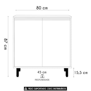 O Balcão conta com duas portas com dobradiças metálicas reforçadas, que garantem uma abertura suave, enquanto os puxadores em polímero adicionam um toque elegante, fácil de harmonizar com diferentes estilos de decoração.