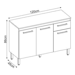 Balcão de Cozinha Dama com Tampo 120 cm Avena Grafito - Demóbile