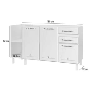 Conteúdo da Embalagem: 1 (um) Balcão sem Tampo 150cm Kit Ferragem Manual de Montagem