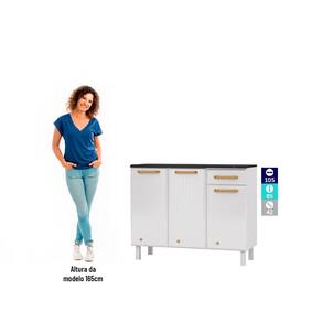 Balcão de Cozinha de Aço Triplo Telasul Diamante Smart C/ Tampo - Branco