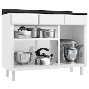 Balcão de Cozinha de Aço Triplo Telasul Topázio C/ Tampo - Branco