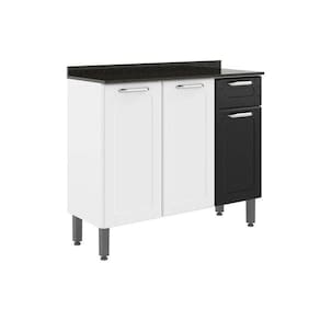 Balcão De Cozinha Dona Maria 6173 3 Portas 1 Gaveta C/ Tampo E Pés 105cm Branco/preto - Bertolini