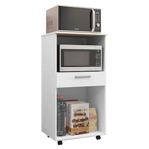 O Balcão para Cozinha Duo é produzido em MDP de 12 e 15mm, produzido com madeira reconstituída respeitando o meio ambiente. Composto de duas portas e uma ampla gaveta onde são utilizadas dobradiças e corrediças 100% metálicas. Pode ser como Balcão para Micro-ondas e também para forno elétrico, com passa fio que facilita o acesso a tomadas na parede e tampo para forno elétrico ou outro eletroportátil. Os puxadores são ergonômicos em plástico resistente (poliestireno). Possui quatro rodízios em plástico resistente (poliestireno) que facilitam a movimentação do produto, compacto para qualquer espaço.