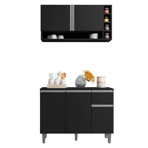 Balcão de Cozinha e Armário Aéreo Vanessa Preto Fosco - AJL
