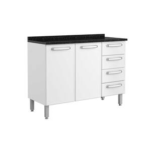 Balcão de Cozinha Evidence 7126 2 Portas e 4 Gavetas c/Tampo 120cm Branco - Bertolini