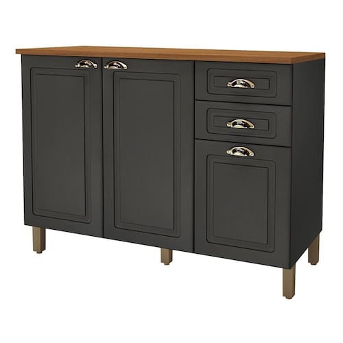 Balcão de Cozinha Firenze 120cm 3 Portas e 2 Gavetas com Tampo MDF - Indékes