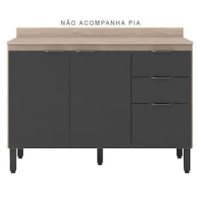 Balcão de Cozinha Firenze com Tampo 120 cm Avena Grafito - Demóbile