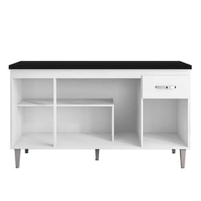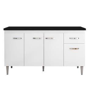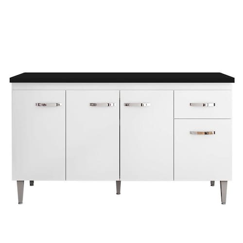 Balcão de Cozinha Gabriela Branco Flex com Tampo 150 cm Preto Fosco - AJL