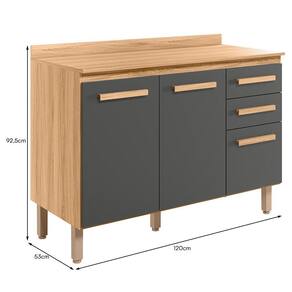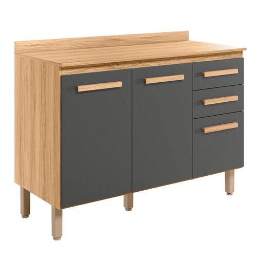 Balcão de Cozinha Intenza 120cm com Tampo MDP - Nicioli O Balcão de Cozinha Intenza 120cm da Nicioli é a escolha ideal para quem busca funcionalidade e sofisticação. Com estrutura em MDP e pintura UV, oferece durabilidade e um acabamento moderno. Possui 2 portas com dobradiças metálicas, 3 gavetas com corrediças telescópicas e uma prateleira interna, proporcionando amplo espaço para organização. Os puxadores em MDF agregam elegância ao design, enquanto os pés em ABS com regulagem de altura garantem estabilidade. Versátil e espaçoso, é perfeito para complementar sua cozinha com praticidade e estilo, acompanhado de um tampo em MDP de 15mm.