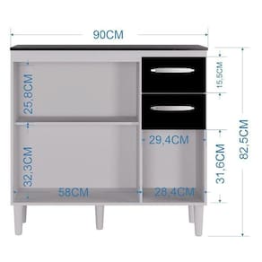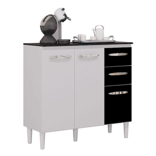 Balcão de Cozinha Isadora Branco Preto - Poquema