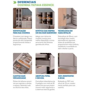 Divisor de talheres removível: facilita a organização dos utensílios.Corrediças telescópicas: com 3 estágios e mais de 30 de aço, proporcionam abertura total da gaveta com mais .Rodapés impermeáveis: 100% resistentes à água, ideais para ambientes úmidos como a cozinha.