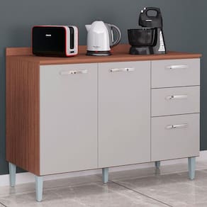 Apresentamos a você que procura por qualidade bom preço e um design moderno que irá lhe proporcionar praticidade na hora de organizar seus utensílios, o Balcão de Cozinha com Tampo da linha Lavínia na cor Capuccino Off White conta com amplo espaço interno, pés reguláveis para facilitar seu dia a dia. Confira mais sobre esse lindo balcão abaixo: