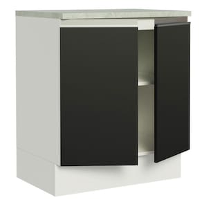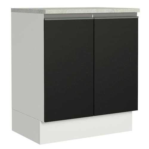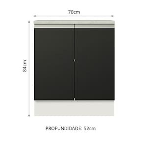 Possui duas portas e divisão interna com uma prateleira e dois nichos. É ideal para organizar panelas, utensílios, louças e produtos de limpeza.