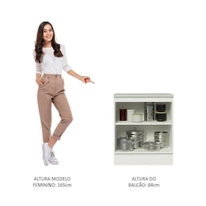 Possui duas portas e divisão interna com uma prateleira e dois nichos. É ideal para organizar panelas, utensílios, louças e produtos de limpeza.