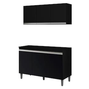 Balcão de Cozinha Manu com Tampo 120 cm e Armário Aéreo Andréia Preto Fosco - AJL