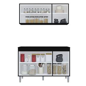 Balcão de Cozinha Manu com Tampo 120 cm e Armário Aéreo Andréia Preto Fosco - AJL