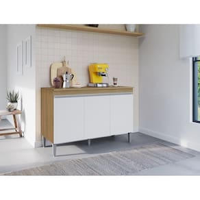 Características: Material da Estrutura: 100% MDP Acabamento: Pintura UV Escala de Brilho: Fosco Possui 3 portas Dobradiças em aço Puxadores embutidos Pés em PVC Design moderno