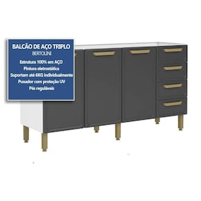 Balcão de Cozinha Bella c/ 3 Portas e 4 Gavetas s/ Tampo 160cm Grafite - Bertolini Marca: Bertolini