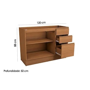 Balcão de Cozinha Ciela R626 c/ 2 Portas e 3 Gavetas s/ Tampo 120cm Canela - Kappesberg
