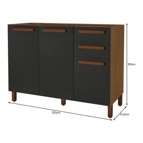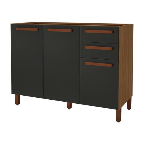 Balcão de Cozinha Monza 120cm 3 Portas e 2 Gavetas sem Tampo - Indékes Funcionalidade e espaço bem distribuído definem o Balcão Monza 120cm sem tampo. Fabricado em MDP com pintura UV, possui 3 portas com prateleira interna e 2 gavetas com corrediças telescópicas, ideais para armazenar utensílios e mantimentos com praticidade. Os puxadores alça em ABS oferecem um toque moderno ao móvel, enquanto os pés em plástico com regulagem de altura garantem estabilidade em diferentes tipos de piso. Modelo versátil que não acompanha tampo, permitindo personalização conforme sua cozinha.