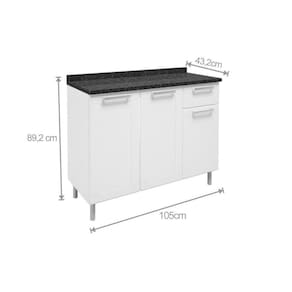 Balcão de Cozinha Múltipla 6114 3 Portas 2 Gavetas c/Tampo 105cm Branco - Bertolini