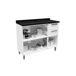 Balcão de Cozinha Múltipla 6114 3 Portas 2 Gavetas c/Tampo 105cm Branco/Preto - Bertolini