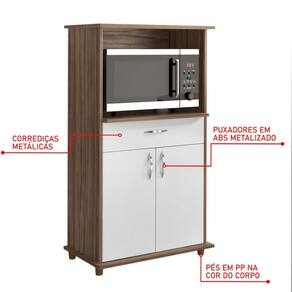 Especificacoes Tecnicas: Marca: Notavel Moveis Modelo: NT3070 Estrutura: MDP Quantidade de Portas: 02 Tipo de Portas: De Bater Quantidade de Gavetas: 01 Com corredicas metalicas: Sim Espaco para micro-ondas/forno: Sim