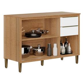 Balcão de Cozinha Paola 2003701 Carvalho Dakar Branco Brilho - Aramóveis