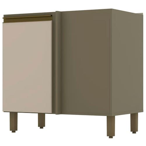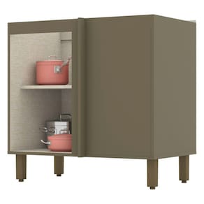 O(a) Balcão de Cozinha para Canto Oblíquo évelin 1 Porta 1 Prateleira Duna/Cristal - Henn é produzido em MDF na escala de brilho Fosco, e possui um grau de dificuldade de montagem: Médio.