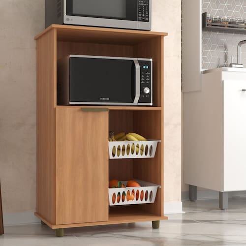 O Balcão forno e fruteira tem altura 115cm, comprimento 66cm e 45cm de profundidade. É ideal para sua cozinha, ele suporta Forno Micro-ondas, Forno Elétrico e tem duas cestas para frutas, e uma porta de bater. É o balcão ideal para você ter na sua cozinha. Suporta Granito: Sim Acabamento da Porta: Finish Foil Escala de Brilho da Porta: Fosco Material do Puxador da Porta: Plástico Produto Montado: Sim Acabamento: Finish Foil Acabamento dos Pés: Polipropileno Acompanha Tampo: Sim Altura dos Pés: 7 cm Altura Máxima dos Pés: 7.0000 Ambiente Principal: Cozinha Balcão Acompanha Pia: Não Balcão Suporta Pia: Não Cesto para Frutas: 02 codigo_ean: 7909903980637 Complexidade da Montagem: Baixa: pode ser montado por uma pessoa sozinha Cor: Freijó Cor do Produto: Freijó Cor Flex: Não Cor Interna: Freijó Escala de Brilho: Fosco Espessura do Material da Estrutura: 15 mm Itens Inclusos: 1 Balcão, Manual de Montagem e Kit Ferragens Linha ou Coleção: 2025 Manual de Especificação Técnica: https://product-hub-prd.madeiramadeira.com.br/961623/documents/1ed3251c-37f3-4d6e-b609-708def0c8b64248461326621729607761812.pdf Manual de Montagem e Instalação: https://product-hub-prd.madeiramadeira.com.br/961623/documents/4f91c672-80df-4653-b325-74e88636d2c00balcoparafornocomfruteira.pdf Marca: j carvalho Material da Dobradiça/Corrediça da Porta: Metálica Material da Porta: MDP Material do Cesto: Polietileno Material do Tampo: MDP Material dos Pés: Polipropileno Medida do Tampo (L x C x E): 45x66 Montagem Flex: Não Necessita Montagem: Sim O Balcão Acompanha Pia: Não Origem do Produto: Nacional Pés Reguláveis: Sim Peso: 22,1 kg Possui Pés: 04 Possui Portas: Sim Possui recorte para Cooktop: Não Recomendações de Uso, Manutenção e Limpeza: Flanela umedecida Sapatas Niveladoras: Sim Sistema de Montagem: Parafusos Suporta Até (kg): 30 kg Tipo de Dobradiça/Corrediça da Porta: Simples Tipo de Porta: Bater Tipo de Puxador da Porta: Externo