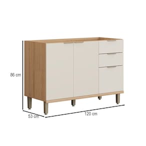 O(a) Balcão de Cozinha para Pia 120 Cm Bless 2 Portas 3 Gavetas 100% Mdf Jequitiba/Off White - Linea Brasil é produzido em 100% MDF na escala de brilho Impressão UV, e possui um grau de dificuldade de montagem: Médio.
