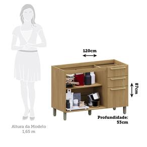 O Balcão para Pia 120cm com 2 Portas e 3 Gavetas é a escolha ideal para quem busca funcionalidade e estilo. Fabricado em MDP de 15mm, oferece resistência e durabilidade, com acabamento sofisticado, trazendo elegância ao seu espaço.