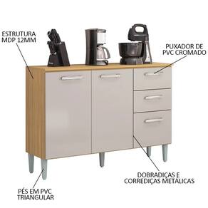 **IDEAL PARA PIA 120CM / NÃO ACOMPANHA PIA INOX Características do Produto Material da estrutura: MDP 12mm. Acabamento: Pintura UV. Escala de Brilho: Fosco/Brilho. Peso Suportado: 34 kg distribuídos. Quantidade de Portas: 3 Portas. Tipo de Porta: Convencional. Quantidade de Gavetas: 2 Gavetas. Quantidade de Prateleiras: 1 Prateleira. Possui Nicho: Não. Possui Pés: Sim. Quantidade de Pés: 5 Pés. Altura dos Pés: 16,5 cm. Material dos Pés: Plástico Triangular. Tipo de Puxador: Plástico Cromado. Diferenciais: - Design compacto. - Dobradiças e corrediças metálicas. - Pés niveladores com regulagem. Sistema de Montagem: Parafusos/Cavilhas/Minifix. Manual de Montagem: Sim. Complexidade da Montagem: Média. Volumes: 1 Volume. Conteúdo da Embalagem: 1 Balcão de Cozinha. Garantia do Fabricante: 90 dias contra defeito de fabricação. Montagem: Recomendamos que seja feita por um profissional. Recomendação de Limpeza: Utilize pano levemente úmido.
