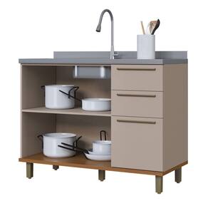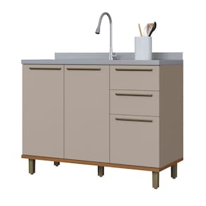 O(a) Balcão de Cozinha para Pia 120cm Munique 2 Portas 3 Gavetas Camurça - Indekes é produzido em MDP na escala de brilho Fosco, e possui um grau de dificuldade de montagem: Médio.