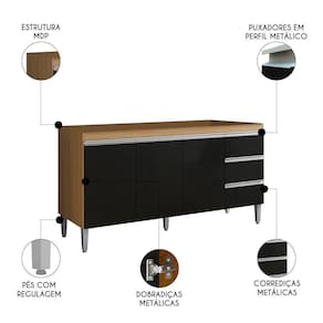 A Cozinha é um cômodo onde precisamos de toda a eficiência possível, não é? Para isso, apresentamos o Balcão de Cozinha Para Pia 150cm 3 Gavetas Andréia Amêndoa/Preto, da AJL Móveis confira!