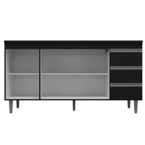 Características: Material da Estrutura: MDP Acabamento: Pintura UV Escala de Brilho: Fosco Possui 3 portas Possui 3 gavetas Dobradiças em aço Puxadores embutidos Pés em PVC Corrediças metálicas Design moderno Acompanha Tampo: Não