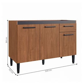 O(a) Balcão de Cozinha para Pia Giovanna 3 Portas 1 Gaveta Freijó/Preto - Irm Móveis é produzido em MDP na escala de brilho Fosco, e possui um grau de dificuldade de montagem: Médio.