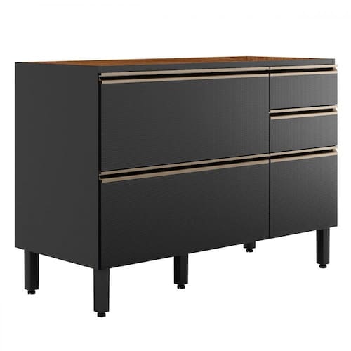 O(a) Balcão de Cozinha para Pia Proença 1 Porta 4 Gavetas 100% Mdf Nogueira/Carbono - Demóbile é produzido em 100% MDF na escala de brilho Fosca com Textura, e possui um grau de dificuldade de montagem: Difícil.