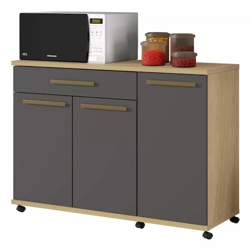 Ideal para ser utilizado como complemento da cozinha, compacto, com amplo espaço interno. o Balcão Parati vai proporcionar praticidade e funcionalidade a sua cozinha. Com suas 03 portas e ampla gaveta ele ajudará a manter sua cozinha sempre bonita e organizada. Além disso ele conta com rodízios para facilitar a locomoção.