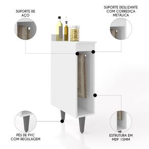 Fabricado em MDP 15mm, com acabamento em BP, oferece maior resistência e durabilidade no uso, prolongando a vida útil do Balcão Porta Pano. Sua estrutura deslizante equipada com corrediça metálica, proporciona um movimento suave e sem esforço. O suporte de aço permite que você tenha acesso rápido e fácil aos guardanapos, além de manter o ambiente sempre organizado e livre de bagunça. Os pés em PVC, são reguláveis, permitindo ajustar pequenos desníveis de piso e manter a estabilidade do produto. Com design prático e sofisticado, esse Balcão de Cozinha é a solução ideal para otimizar seu espaço garantindo qualidade e estilo.