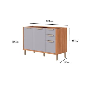Balcão de Cozinha s/ Tampo Eloise c/ 2 Portas e 3 Gavetas 120cm Cinamomo/Off White - MGM - Blush
