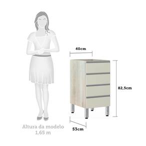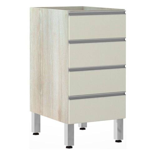 Características: Corpo/Caixaria: MDP Legno Crema FF. Frontais: MDP - BP. Dobradiças: Ø35mm. Puxadores: Alumínio Gola - Prata. Pés: P S - Cromado. Gavetas: 4 Itens inclusos: Manual de montagem, ferragens e acessórios. Montagem com cavilhas e parafusos.