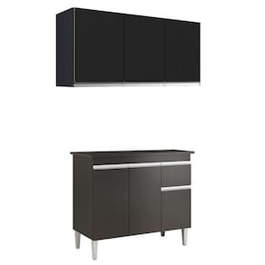 Balcão de Cozinha Tatiane com Tampo 100cm e Armário Aéreo Andréia 3 Portas Preto Fosco - AJL